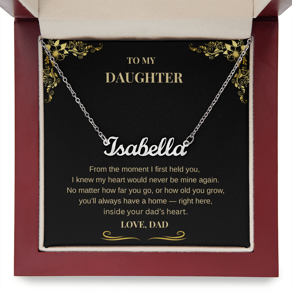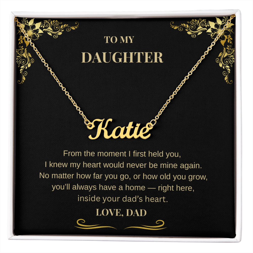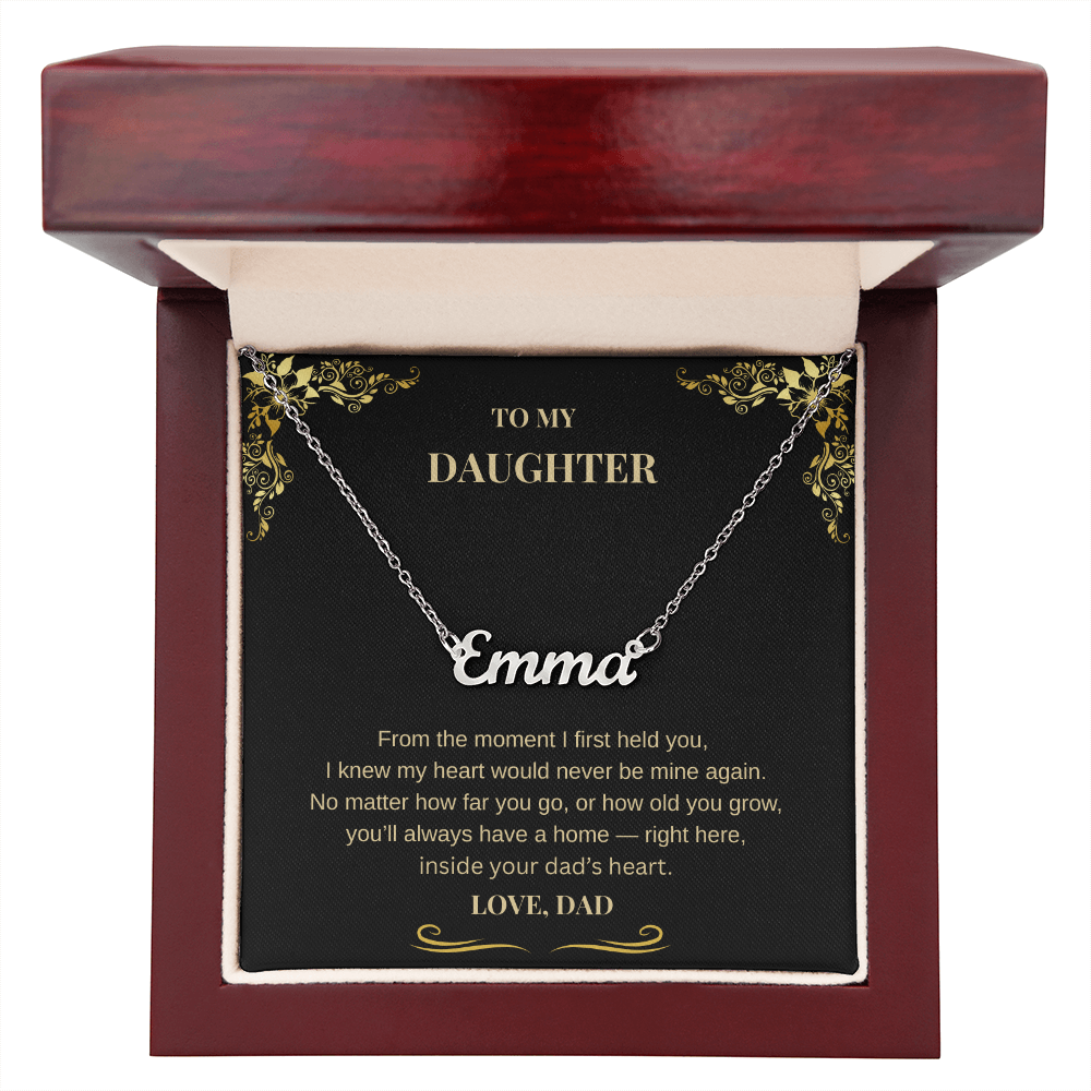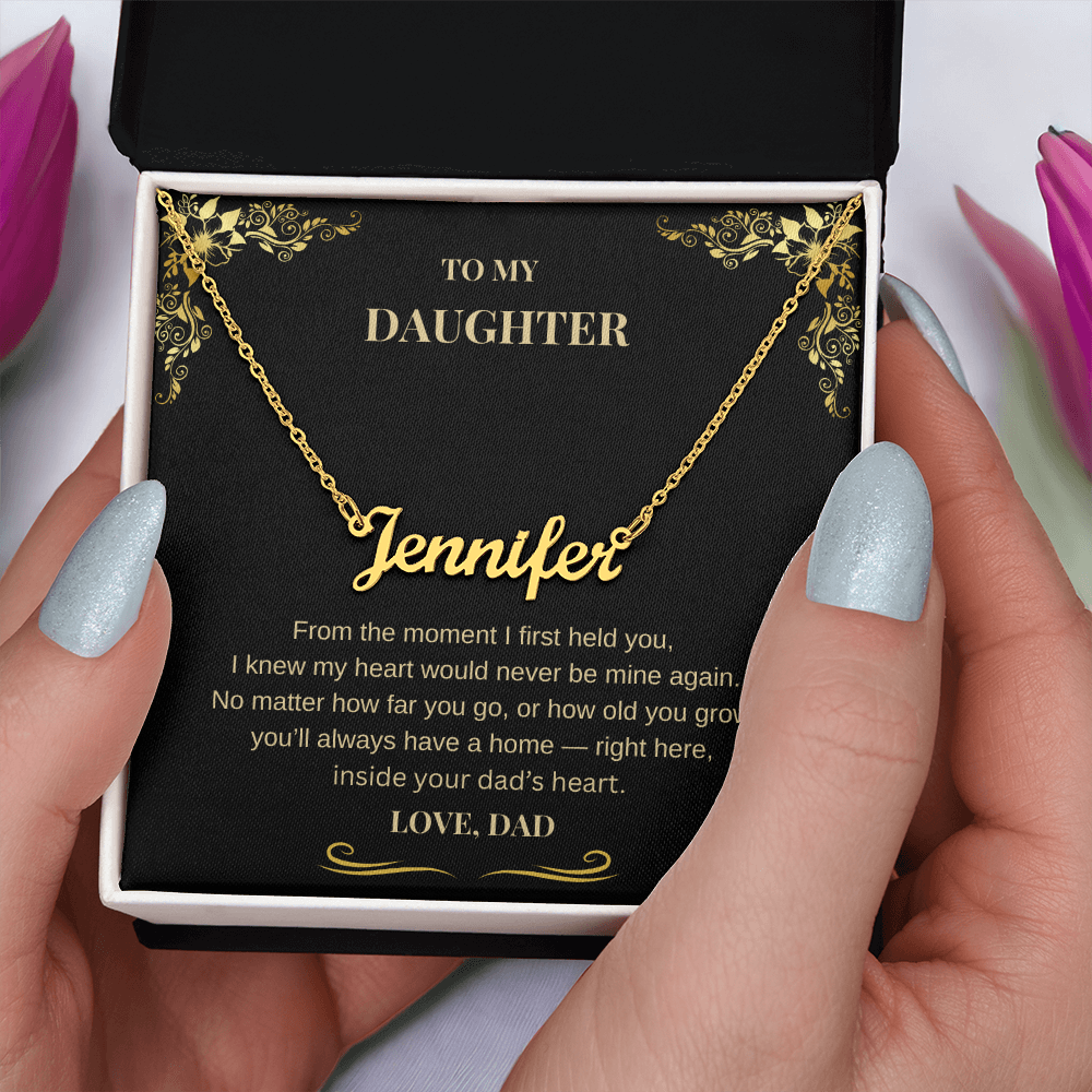 Give your daughter a gift she will treasure for a lifetime — a personalized Name Necklace paired with a deeply emotional message card that speaks straight from a father’s heart.