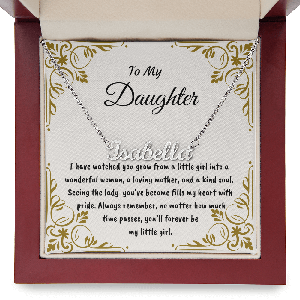 My Dear daughter, I have watched you grow from a little girl into a wonderful woman, a loving mother, and a kind soul. Seeing the lady you’ve become fills my heart with pride. Always remember, no matter how much time passes, you’ll forever be my little girl.