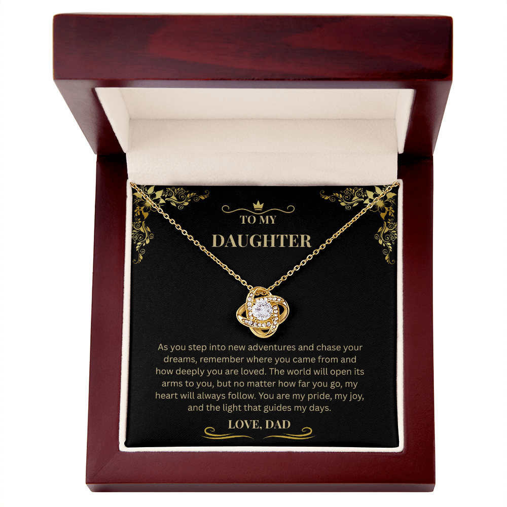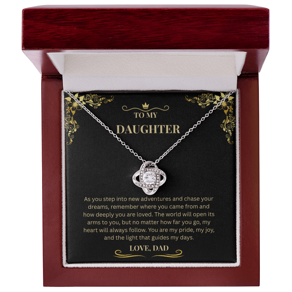 As she steps into new adventures and chases her dreams, this elegant keepsake will remind her of where she came from and how deeply she is loved. The touching message — “You are my pride, my joy, and the light that guides my days” — captures the unconditional love and support every daughter deserves to feel.